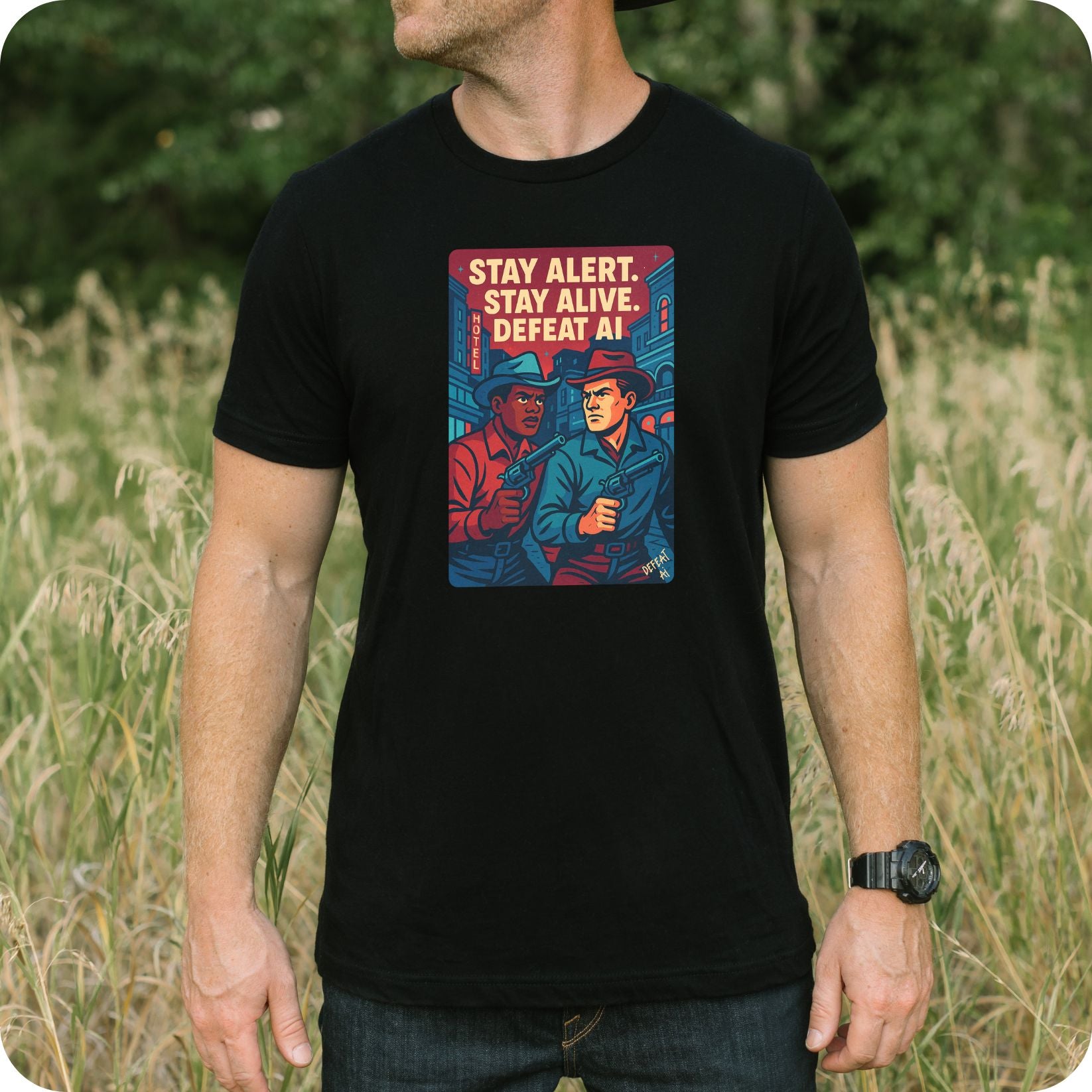 Stay Alert. Stay Alive. Defeat Ai. Unisex Graphic Tee